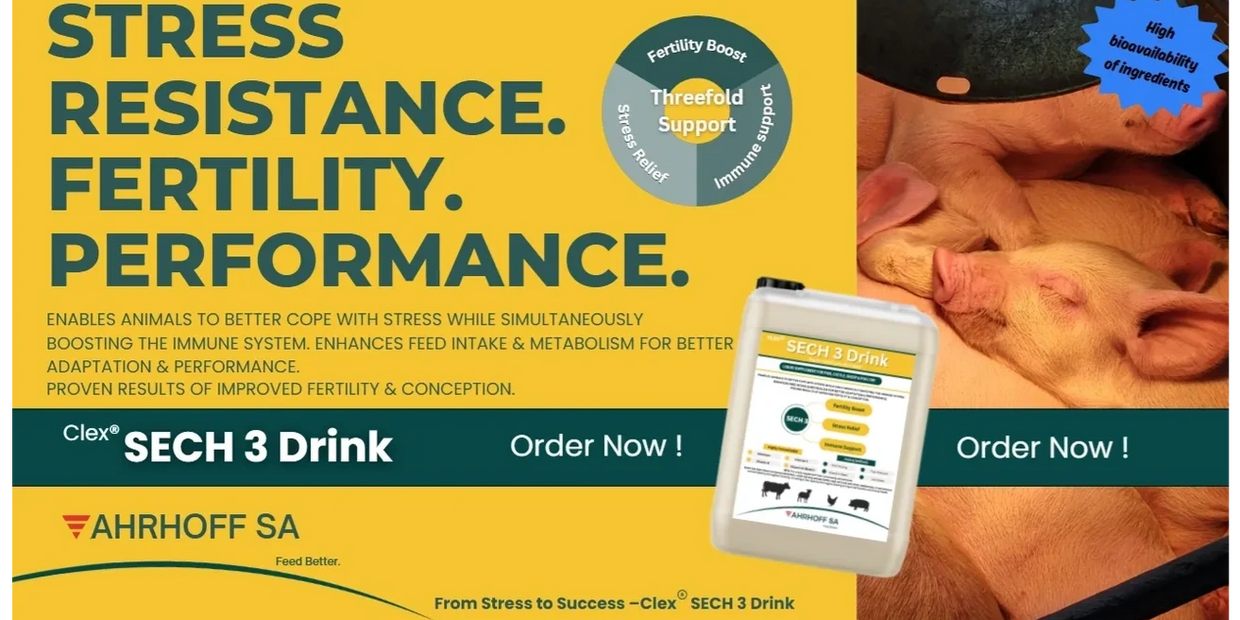®SECH 3 Drink helps all animals dealing with stress, low fertility, and suppressed immunity, by supplying a high-antioxidant, metabolism-boosting formula that enhances cell protection, circulation, and nutrient delivery — resulting in higher fertility, improved resilience, and higher feed intake during stress or peak production phases.